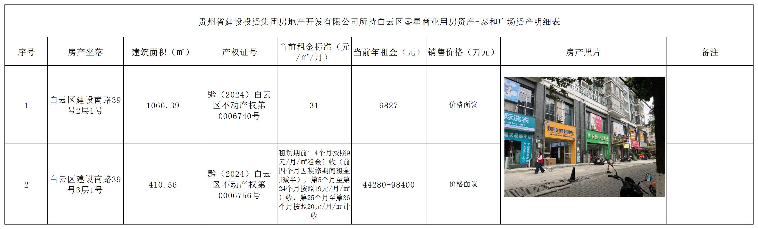 (預(yù)披露)貴州省建設(shè)投資集團(tuán)房地產(chǎn)開(kāi)發(fā)有限公司所持白云區(qū)零星商業(yè)用房資產(chǎn)出售