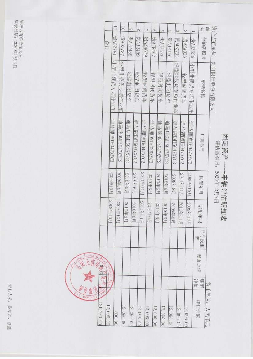 | 項目名稱: | 貴陽銀行處置的11輛運鈔車 | 項目編號: | 2020122800362 |